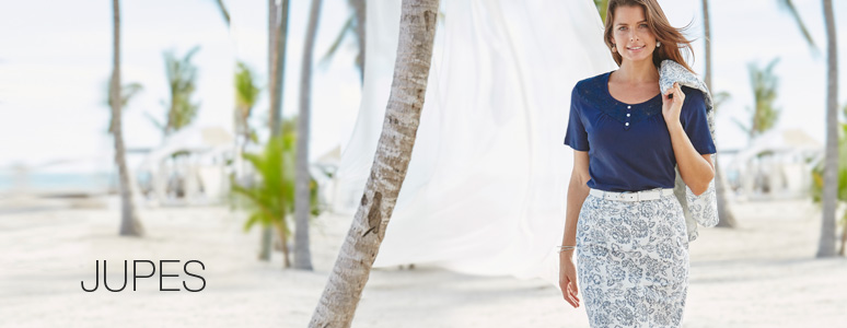 La jupe peut être unie (rouge, blanche, kaki, jaune, vert, rose, bleu, marine) ou avoir un imprimé fleuri, jungle ou rayé. Damart propose des matières comme la maille milano Perfect Fit, pour afficher une silhouette harmonieuse avec des tissus gainants et confortables.